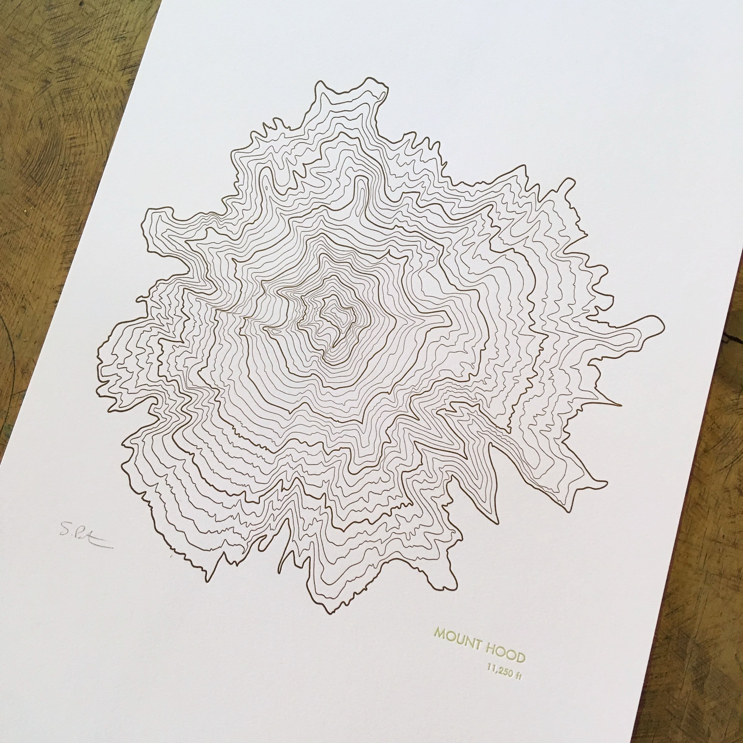 Mount Hood Topographic Map Letterpress Print โ Green Bird Press